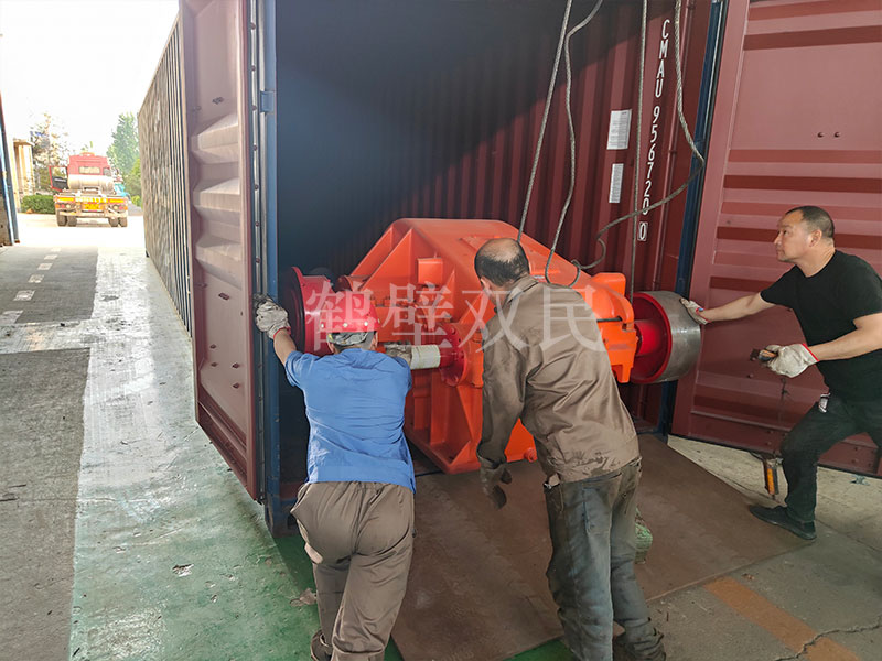 工人師傅將礦用絞車底架拆卸完成,并順利的裝入了集裝箱內(nèi)。