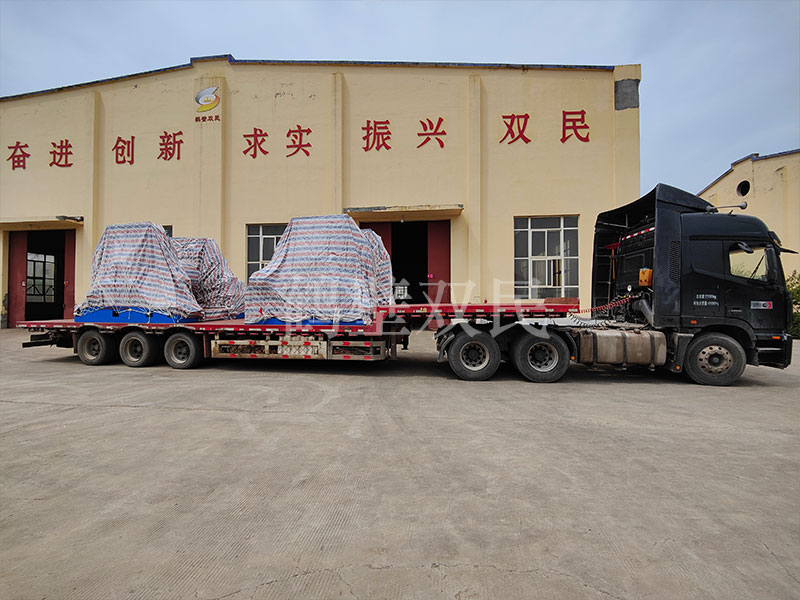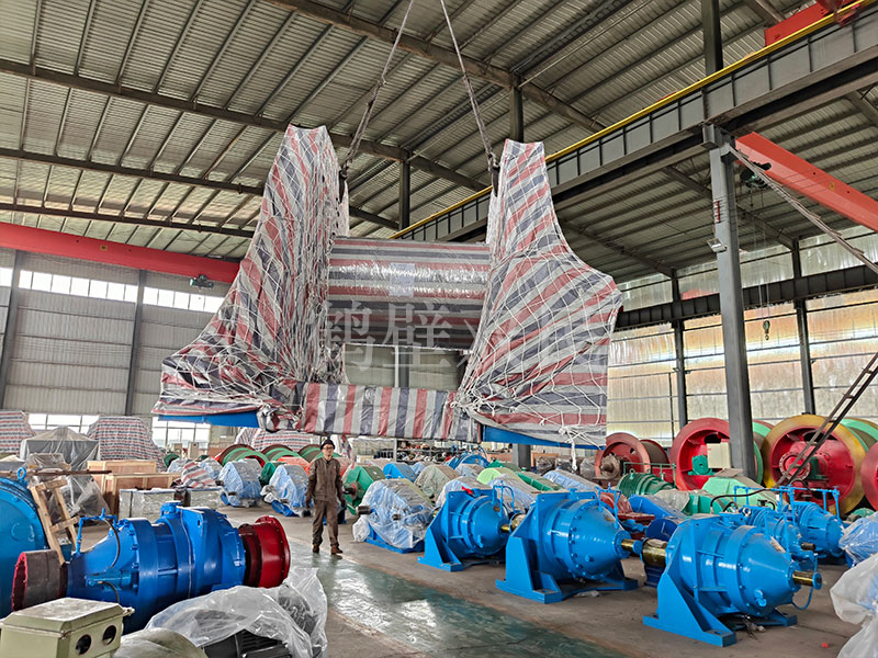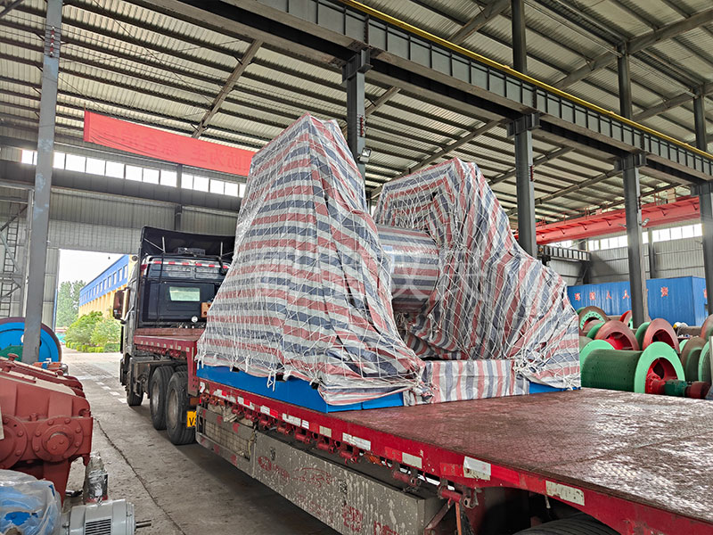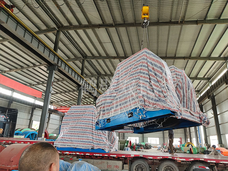 鶴壁雙民在發(fā)往歐洲的井架,裝車完成之后,又開始了鑿井絞車的裝車工作。