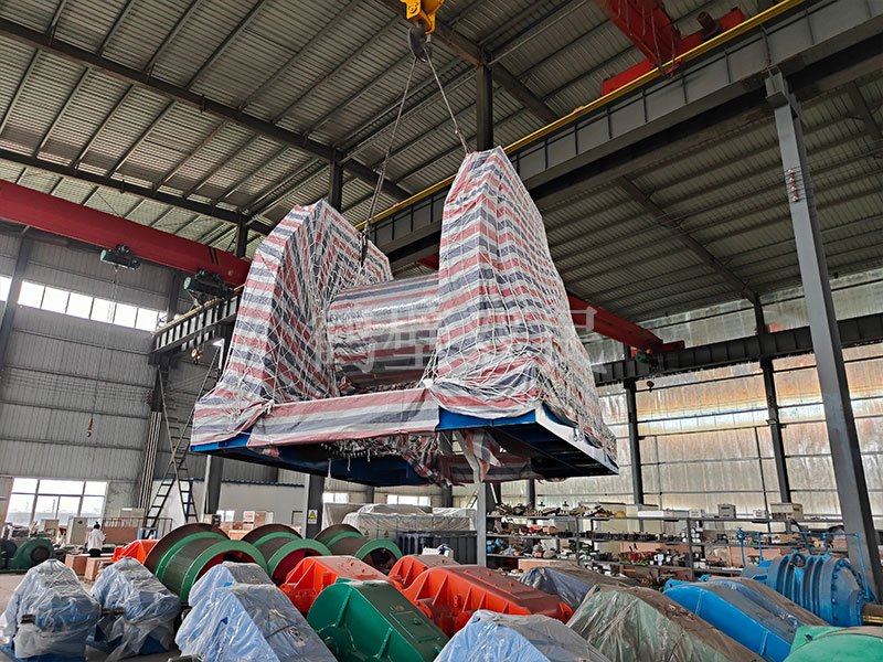 一車鑿井絞車裝車完成,正在等待發(fā)車。