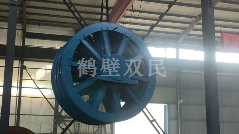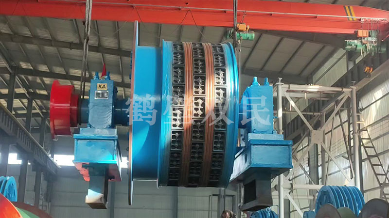 這臺多繩摩擦式提升機為,鶴壁市雙民礦機生產(chǎn)的落地式多繩摩擦式提升機,型號為:JKMD-2.8×4PI 多繩摩擦式提升機。