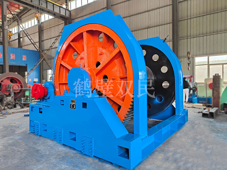鑿井絞車主要用于煤礦、金屬礦和非金屬礦豎井井筒掘進(jìn)時(shí)懸吊吊盤、水泵、水管、注漿泵、風(fēng)筒等掘進(jìn)設(shè)備和張緊穩(wěn)繩,該絞車系雙鋼絲繩懸吊。將減速機(jī)上的差動(dòng)手把放在差動(dòng)位置,若張緊穩(wěn)繩,可使兩根穩(wěn)繩的張緊力保持相等;若懸吊水管、注漿管、風(fēng)筒等管類設(shè)備,可保證其被懸吊管類設(shè)備與地面保持垂直的狀態(tài)。如果懸吊吊盤等盤狀設(shè)備,需將其差動(dòng)手把放在直通位置,才能實(shí)現(xiàn)兩繩繩速的一致。