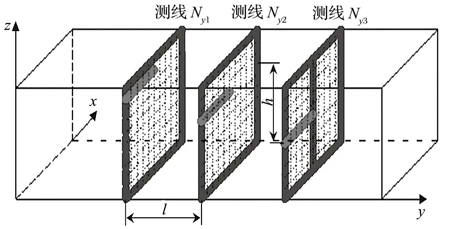 由于井下各點(diǎn)巷道過風(fēng)斷面大小不一、巷道表面平整度造成的風(fēng)阻大小不一等客觀現(xiàn)象,導(dǎo)致風(fēng)速監(jiān)測(cè)時(shí)常出現(xiàn)精度誤差。因此,通過改變布點(diǎn)方式,采取階梯網(wǎng)格方式實(shí)現(xiàn)密集布點(diǎn),將原有斷面進(jìn)行切割細(xì)分,然后分析斷面內(nèi)的風(fēng)流風(fēng)速分布規(guī)律,從而得出相對(duì)準(zhǔn)確的平均風(fēng)速在斷面內(nèi)的實(shí)際位置。經(jīng)過優(yōu)化后,將風(fēng)速傳感器進(jìn)行定點(diǎn)安裝,以此提升風(fēng)速采集的準(zhǔn)確性。階梯網(wǎng)格方式分析風(fēng)速分布規(guī)律如圖1 所示,矩形斷面實(shí)測(cè)風(fēng)速分布如圖2 所示。