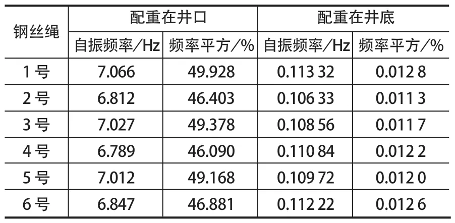 表1 鋼絲繩振動測試結(jié)果