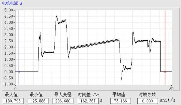 圖4 配重上提時(shí)電動(dòng)機(jī)的電流曲線