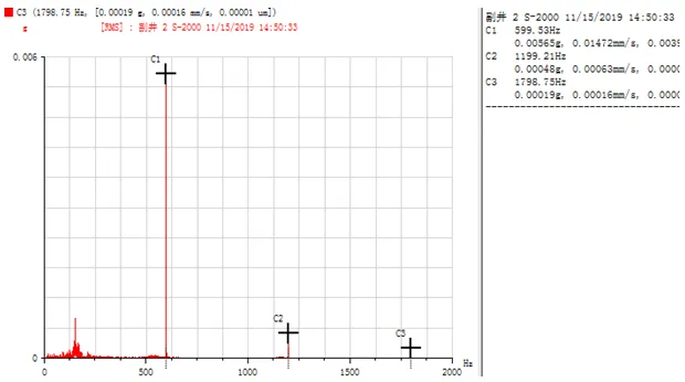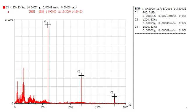 圖8 主軸承座驅(qū)動(dòng)端垂直方向振動(dòng)頻譜圖